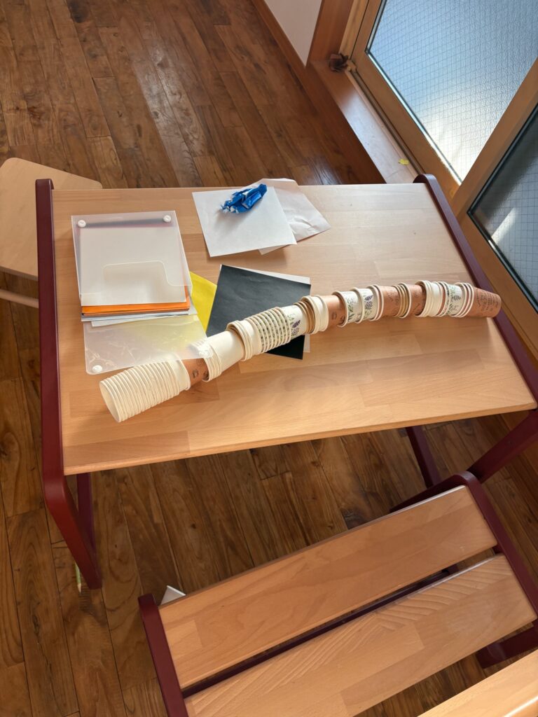 キッズスペースでは紙コップを積み上げたり、子供達で新しい遊びを考えて楽しんでる姿が微笑ましいです❤️