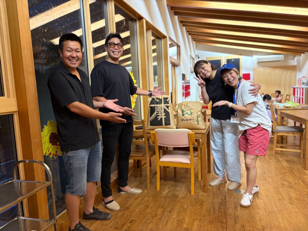 今月は、鈴木社長よりお米のご寄付をいただきました。みんなでおいしくいただき、残りも次回以降の提供に大切に使わせていただきます。温かなご支援、本当にありがとうございます。